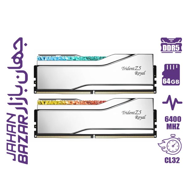 رم کامپیوتر جی اسکیل G.Skill Trident Z5 Royal 64GB Dual 6400MHz CL32 – Silver