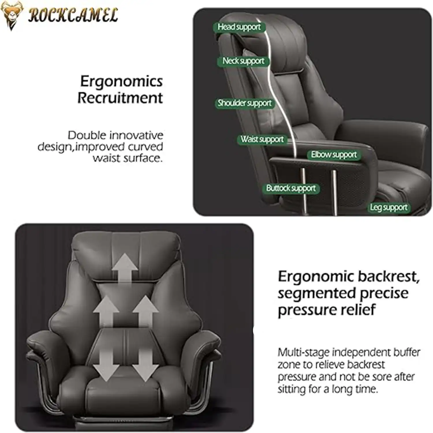 صندلیهای ROCKCAMEL معمولاً دارای طراحی ارگونومیک هستند، به این معنی که: