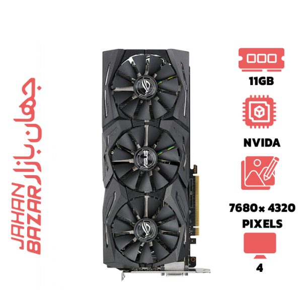 کارت گرافیک ایسوس مدل راگ استریکس مدل جی تی ایکس ۱۰۸۰ تی آی گیمینگ با حافظه ۱۱ گیگابایت امروزه به دلیل پیشرفت در صنعت بازی نیازمند به گرافیک بسیار قوی و قدرتمند است که این مدل کارت گرافیک میتوان گفت که تا 5سال آینده یعنی تاسال 2024 میتوان از این کارت گرافیک برطرف کند چرا که دارای 11GB حافظه گرافیک است که توانایی برطرف کردن نیاز شما را دارد.
