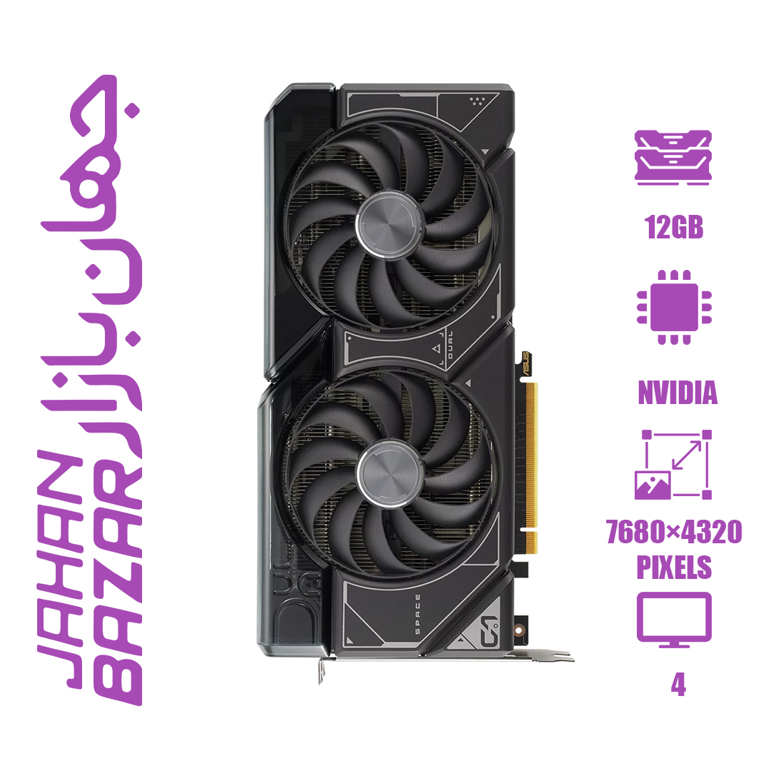 کارت گرافیک ASUS Dual OC Black 12G 4070 یکی از کارتهای گرافیک پرقدرت و پیشرفته در بازار است که توسط شرکت ASUS تولید شده است. این کارت گرافیک از ویژگیها و تکنولوژیهای برجستهای برخوردار است و برای علاقمندان به بازیهای رایانهای، ویرایش ویدئوها، و کاربرانی که به کارهای گرافیکی مرتبط با طراحی و انیمیشنسازی مشغول هستند، گزینهای عالی است.