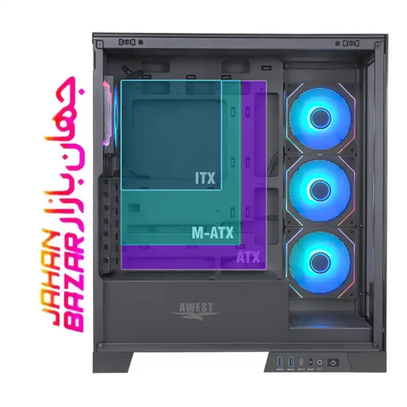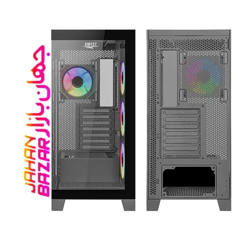 کیس گیمینگ اوست AWEST مدل GT-AQ16-MB یک Mid-Tower زیبا و حرفه‌ای با پنل‌های شیشه‌ای حرارت‌دیده و نورپردازی ARGB
