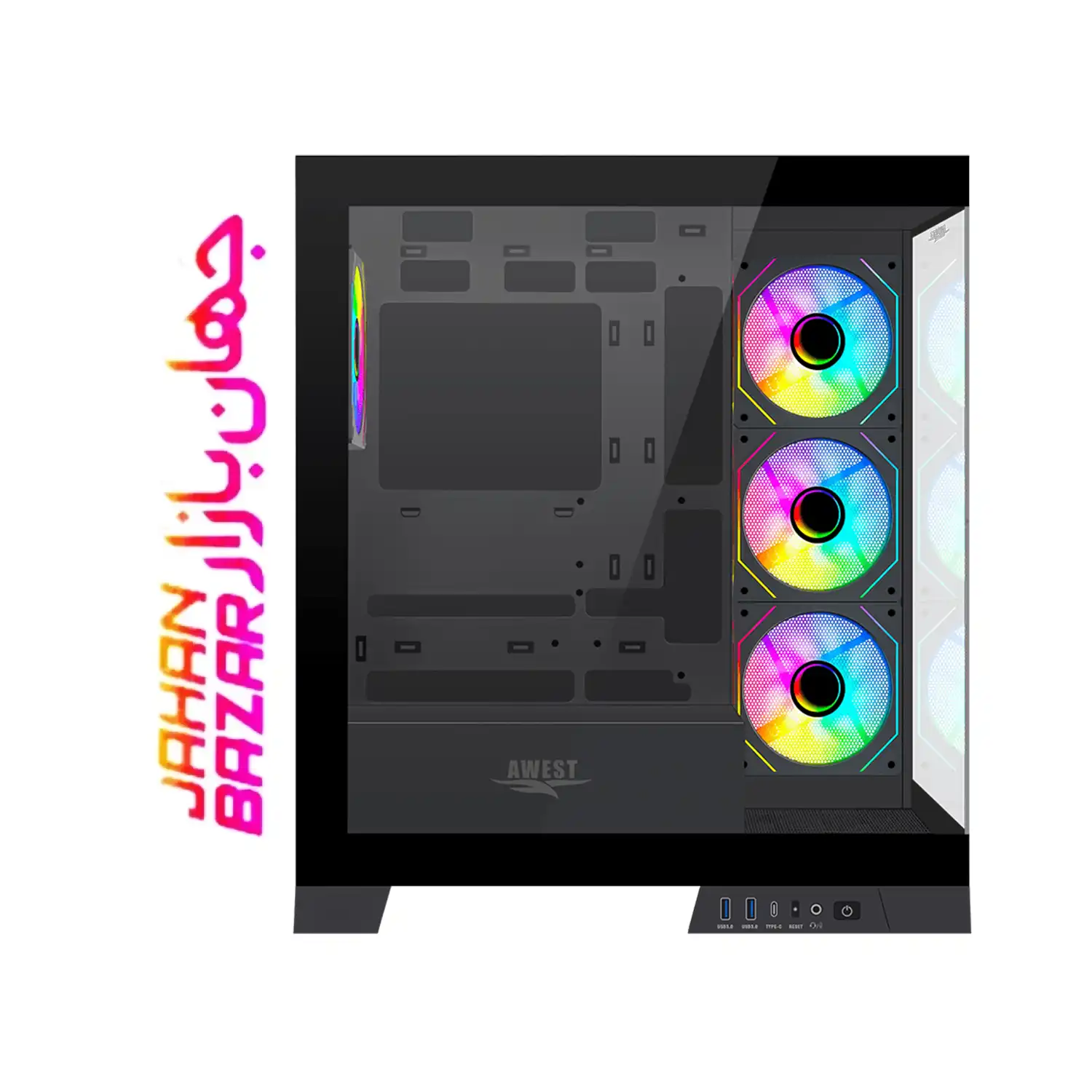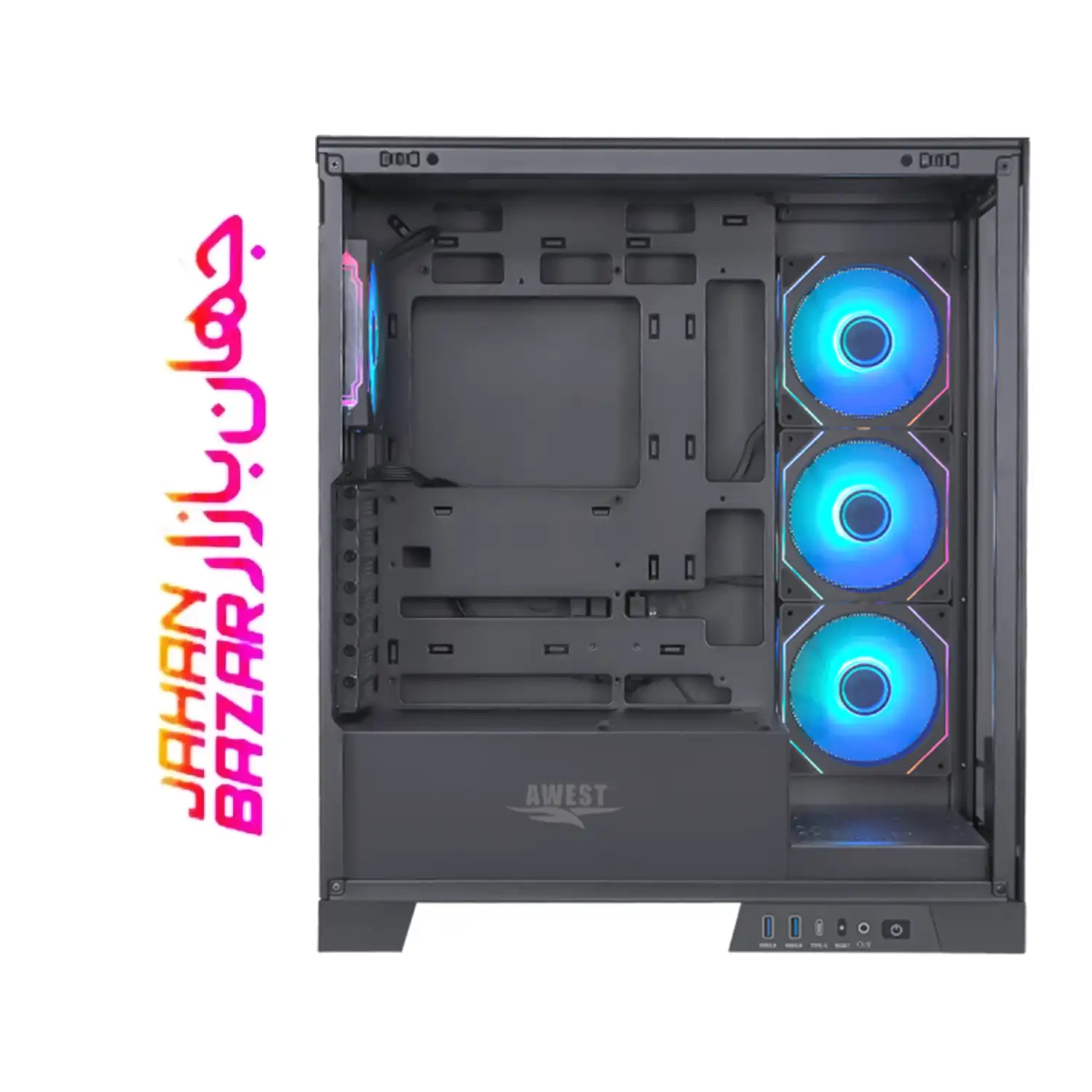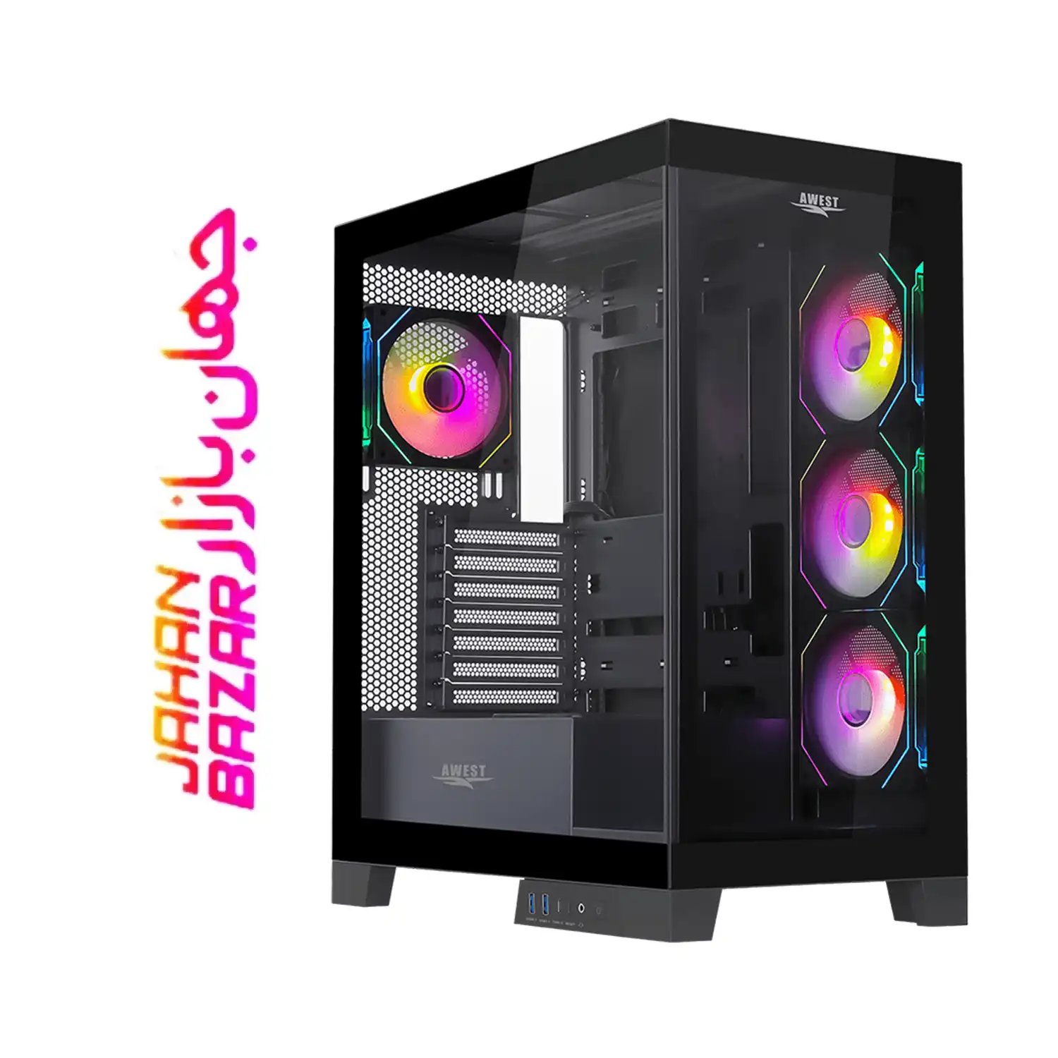 کیس گیمینگ اوست AWEST مدل GT-AQ16-MB یک Mid-Tower زیبا و حرفه‌ای با پنل‌های شیشه‌ای حرارت‌دیده و نورپردازی ARGB