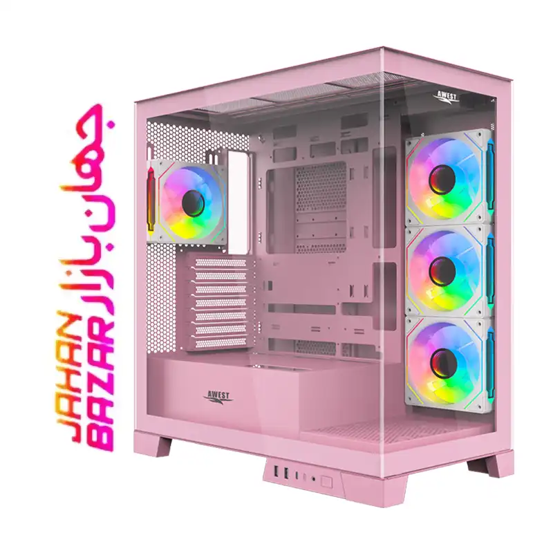 کیس گیمینگ اوست AWEST مدل GT-AQ16-MP یک Mid-Tower زیبا و حرفه‌ای با پنل‌های شیشه‌ای حرارت‌دیده و نورپردازی ARGB