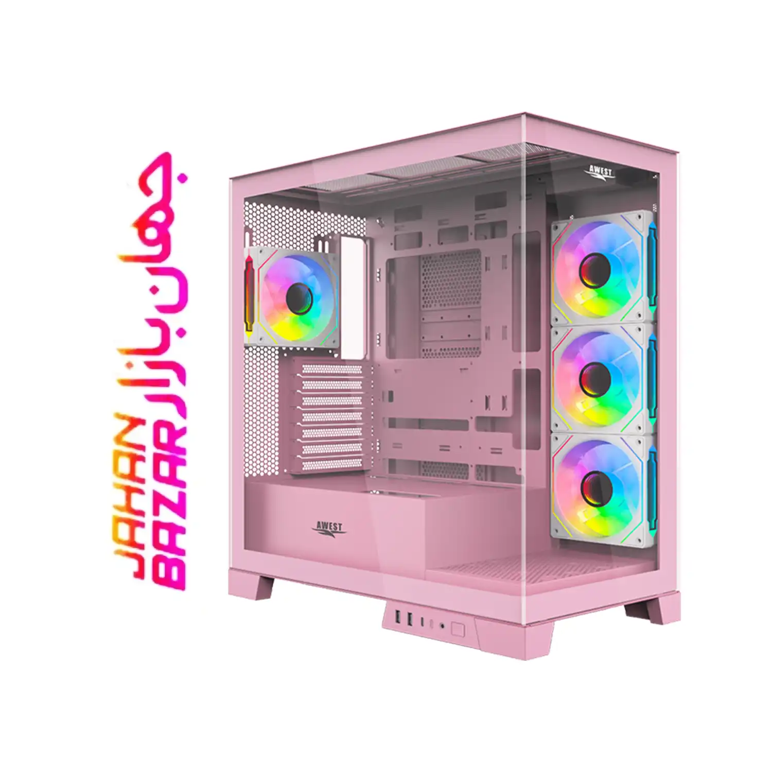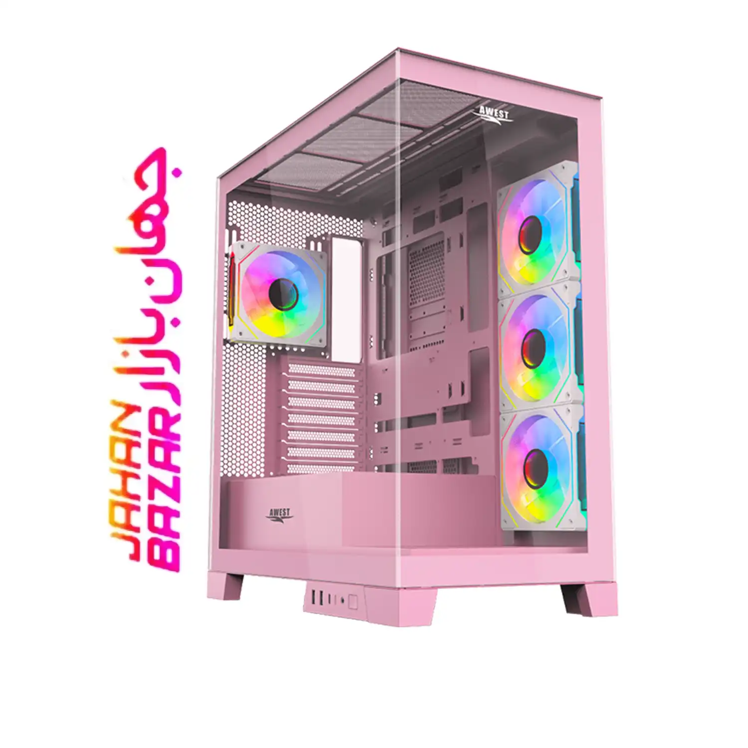 کیس گیمینگ اوست AWEST مدل GT-AQ16-MP یک Mid-Tower زیبا و حرفه‌ای با پنل‌های شیشه‌ای حرارت‌دیده و نورپردازی ARGB