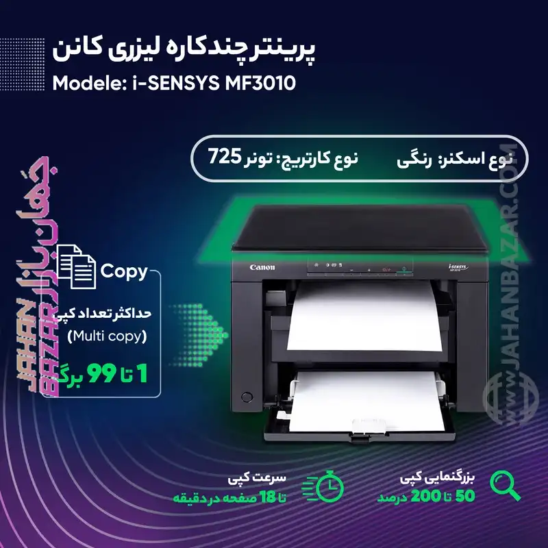 پرینتر چندکاره لیزری Canon کانن مدل i-SENSYS MF3010 – بررسی جامع و ویژگیها