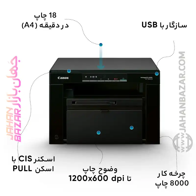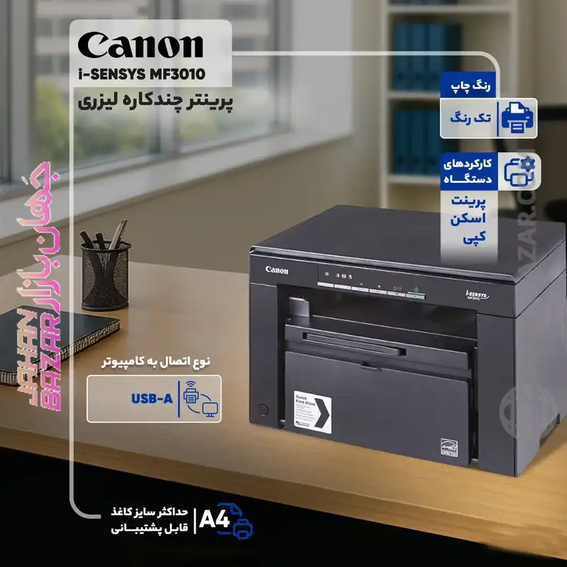 یکی از ویژگیهای برجسته MF3010، توانایی انجام چاپ، اسکن و کپی در یک دستگاه است که کارایی آن را بالا برده و نیاز به تجهیزات مجزا را از بین میبرد.