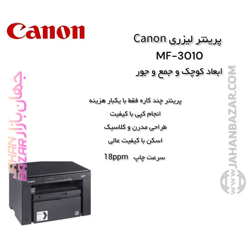 پرینتر Canon i-SENSYS MF3010 یکی از دستگاههای چندکاره لیزری محبوب شرکت کانن Canon است که با طراحی جمعوجور، عملکرد قابلاتکا و کاربری ساده برای کاربران خانگی، دفاتر کوچک و محیطهای اداری با حجم کاری نهچندان بالا طراحی شده است. این پرینتر در دسته پرینترهای سهکاره قرار دارد و میتواند نیازهای اساسی چاپ، اسکن و کپی را در قالب یک دستگاه واحد و باکیفیت برآورده کند. ( پرینتر چندکاره لیزری Canon کانن مدل i-SENSYS MF3010 )