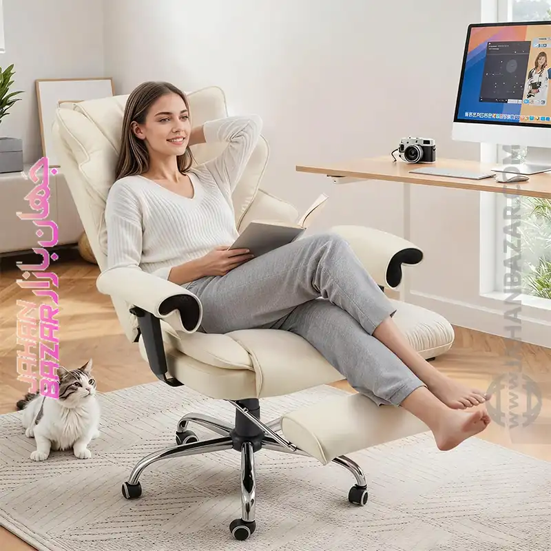 5. این صندلی مدیریتی ارگونومیک دارای تکیهگاه برای سر، شانه، کمر و پا میباشد. ساختار لایهای آن ترکیبی از چرم PU قابل تنفس، فوم با مقاومت بالا و سیستم فنر واکنشپذیر برای راحتی و پایداری متعادل است. این صندلی تا ۴۰۰ پوند (حدود ۱۸۰ کیلوگرم) را برای استفاده روزانه قابل اعتماد تحمل میکند.