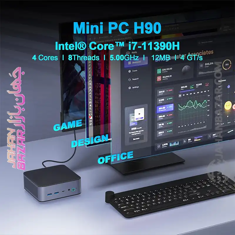 سازگاری گسترده: مینی کامپیوتر رومیزی H90 با سیستم عامل ویندوز ۱۱ و اوبونتو سازگار است که قادر است به راحتی نرمافزارهای اداری و طراحی را اجرا کند.