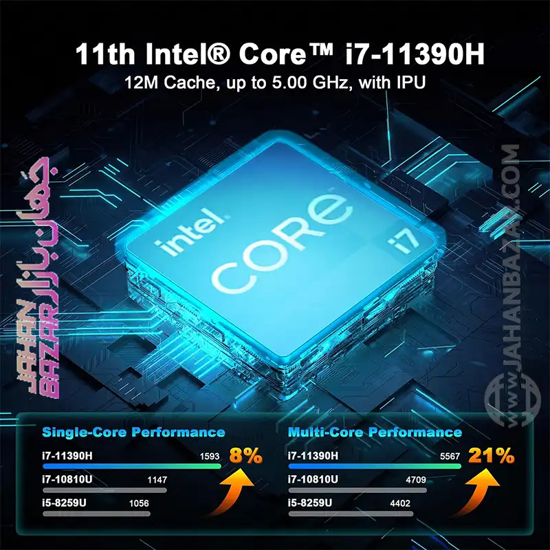 پردازنده: پردازندههای نسل یازدهم Intel Core i7 11390H (۱۲ مگابایت حافظه کش، تا ۵.۰ گیگاهرتز)