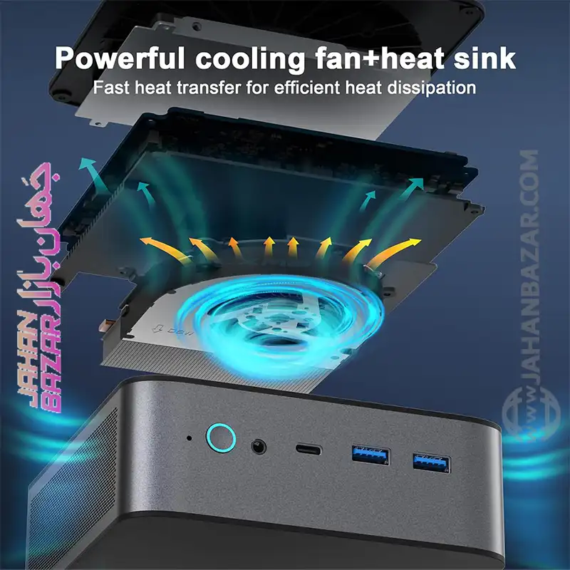 برای اتصال به نمایشگر، از پردازنده گرافیکی یکپارچه Intel Iris Xe بهره میبرد که از خروجی با کیفیت 8K پشتیبانی کرده و امکان اتصال همزمان سه نمایشگر از طریق پورتهای HDMI، DP و USB-C را فراهم میکند. از نظر شبکه، به Wi-Fi 6 پرسرعت، بلوتوث ۵.۲ و دو پورت شبکه ۲.۵ گیگابایتی مجهز است که اتصالی پایدار و فوقالعاده سریع را تضمین میکند. سیستم خنککننده هوشمند با دو لوله مسی و بدنه آلومینیومی باکیفیت، عملکرد پایدار و بیصدایی را برای این مینی پیسی جذاب به ارمغان آورده است.