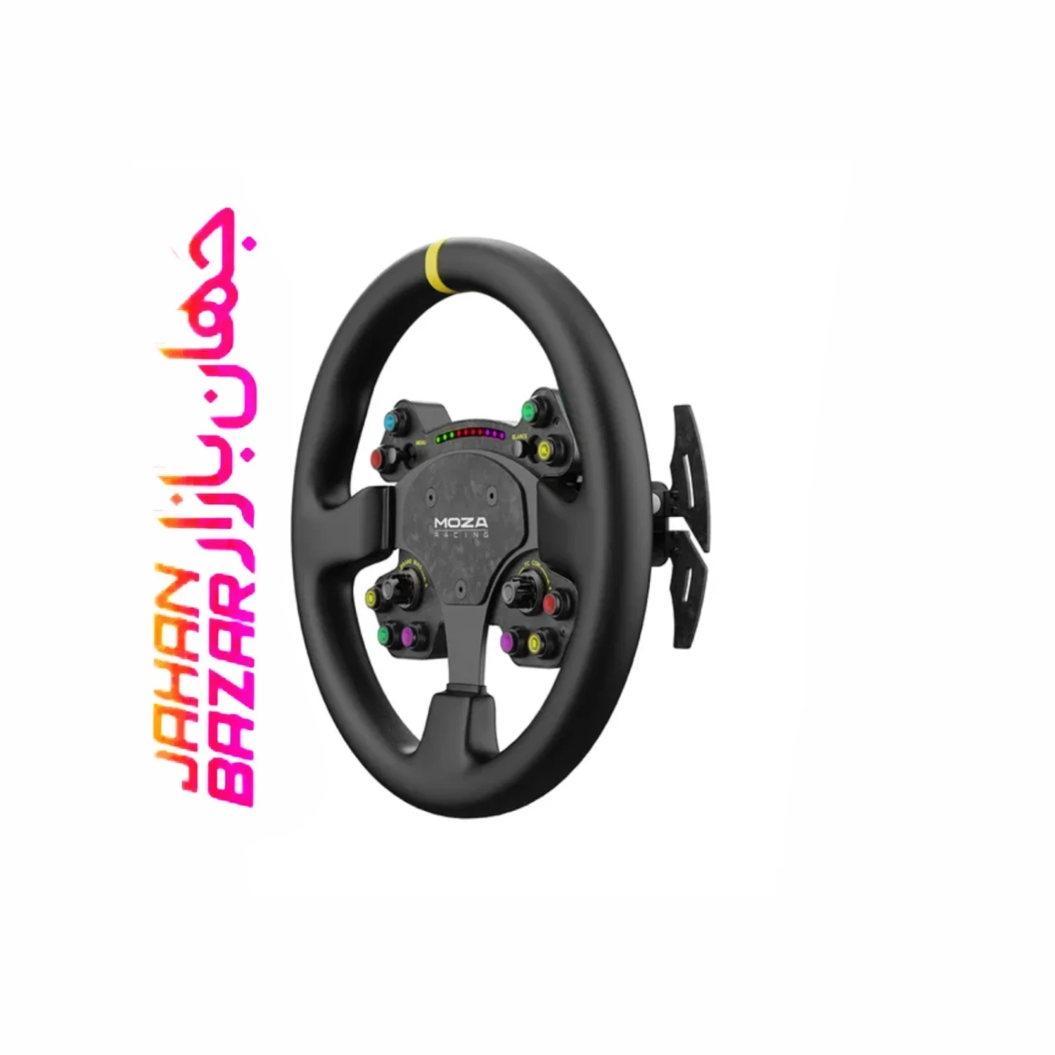 فرمان MOZA RS V2 با امکان تغییر رنگ LED ها و دکمهها، تجربهای کاملاً شخصی و مطابق با سلیقه شما ارائه میدهد. شما میتوانید رنگهای شفت لایت را به دلخواه تغییر دهید و حالتهای نورپردازی مختلف را امتحان کنید. این شخصیسازی نه تنها جلوه بصری زیبا ایجاد میکند، بلکه اطلاعات مهم مسابقه را به شکل واضح و جذاب در اختیار شما قرار میدهد.