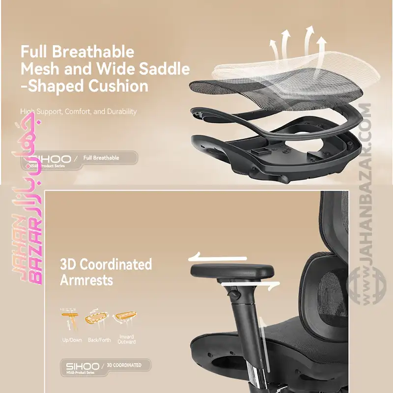 صندلی SIHOO M56B یک صندلی اداری با طراحی ارگونومیک پیشرفته است که برای استفاده طولانیمدت در محیطهای کاری، مطالعه یا حتی گیمینگ مناسب است. این مدل با پشتی بلند، پشتیبانی کامل از ستون فقرات و تکیهگاه سر قابلتنظیم (Headrest 3D) طراحی شده تا فشار روی گردن و کمر را کاهش و راحتی را افزایش دهد.